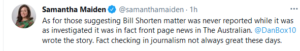 This doesn’t stand up to scrutiny. At risk of using social media as a source of information, swathes of the media sought comment from the Attorney General, from Amber Schultz at Crikey, to Samantha Maiden at news.com.au, Neil Mitchell at 3AW and Kate McClymont at The Sydney Morning Herald.