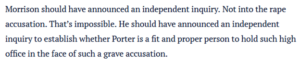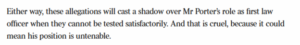 Porter’s office then rowed back on the allegations.