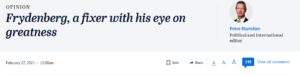 Meanwhile Peter Hartcher at The Sydney Morning Herald, fresh from his somewhat fawning coverage of Josh Frydenberg: