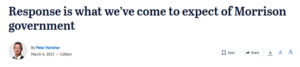 had some harder-hitting commentary, pointing out the failings of Morrison’s response. Preparing the ground for a leadership challenge?