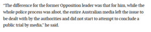 Chris Uhlmann at Nine News and Paul Kelly at The Australian were concerned about a “trial by media”, even though that is essentially journalism, as noted by experts, including senior research fellow Denis Muller. As Muller wrote, the media did their job of being watchdogs.