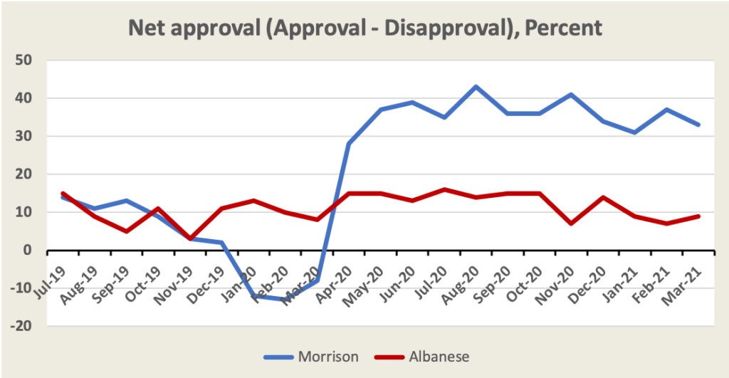 Polling expert Kevin Bonham gives some plausible explanations of the difference, pointing out that approval and voting intention are not the same. I might have a positive impression of the prime minister, but still intend to vote against the prime minister’s party.