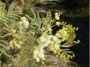 What’s the link between the reclining gent, the yellow Acacia, the pink Boronia and the towering Eucalypts?