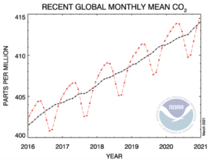 It wasn’t only the forests that provided bad news for the environment during 2020. The economic recession slowed down many industries and dramatically reduced transportation and travel, resulting in a 7% decrease in carbon emissions. But despite this, atmospheric levels of carbon dioxide and methane, the two main contributors to global warming, continued to rise. In fact, the annual increase in CO2 during 2020 (2.6 parts per million) was the fifth highest ever recorded and would have been the highest ever had it not been for COVID.