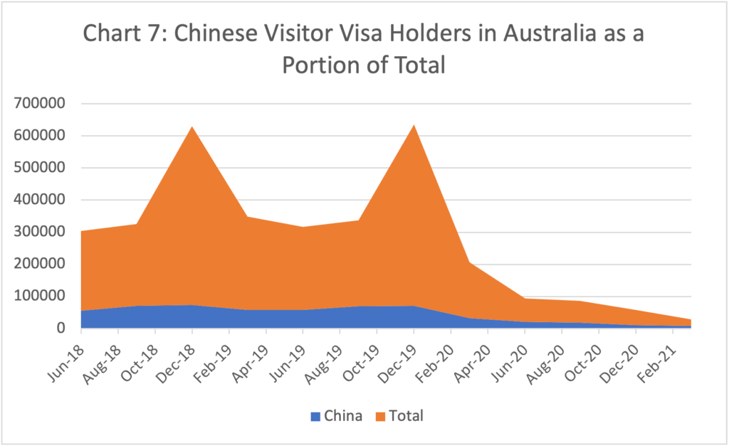 There will likely be a small rise in family and business visas granted to Chinese citizens in 2020-21 predominantly due to backlog clearance. But the long-term trend will be decline even after international borders reopen and even if the Government increases the migration program as assumed by the Treasury Department in its December 2020 Population Statement. The tightening of the business skills program and increased use of the new Global Talent Independent for business migrants and investors, where decision-makers have much more discretion in who they approve, will lead to a decline in visas granted to migrants from mainland China. That will be partly offset by increased grants to migrants from Hong Kong.