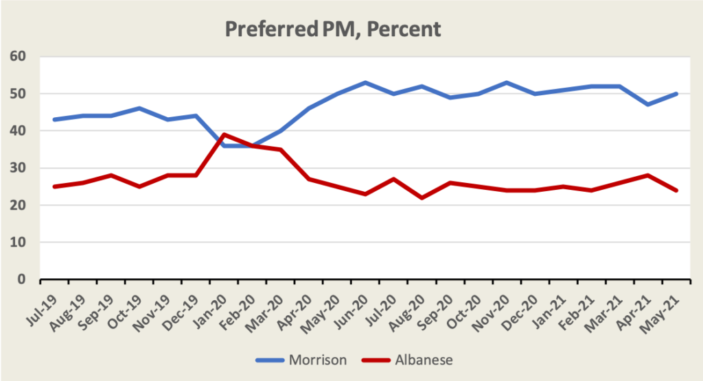 The Essential Report has its monthly findings on our approval or otherwise of Morrison and Albanese and on our preferred prime minister. Albanese’s net approval continues to slide, and Morrison’s lead as preferred prime minister has widened. It’s as if the vaccine rollout has been handled competently, the government has developed a coherent energy policy, people’s real incomes are rising, housing has been kept affordable, the government is handling public administration competently and openly, and Morrison’s character is beyond reproach.Why?