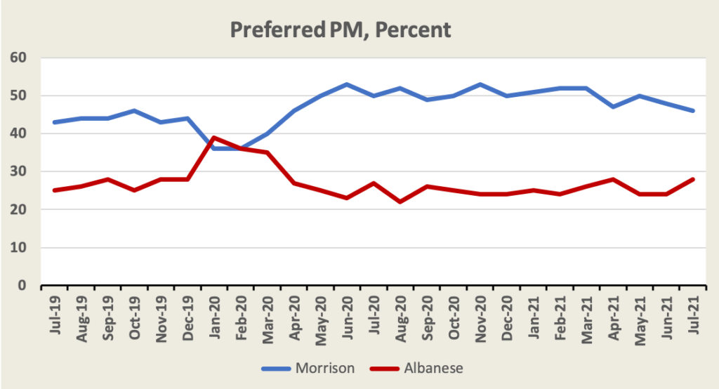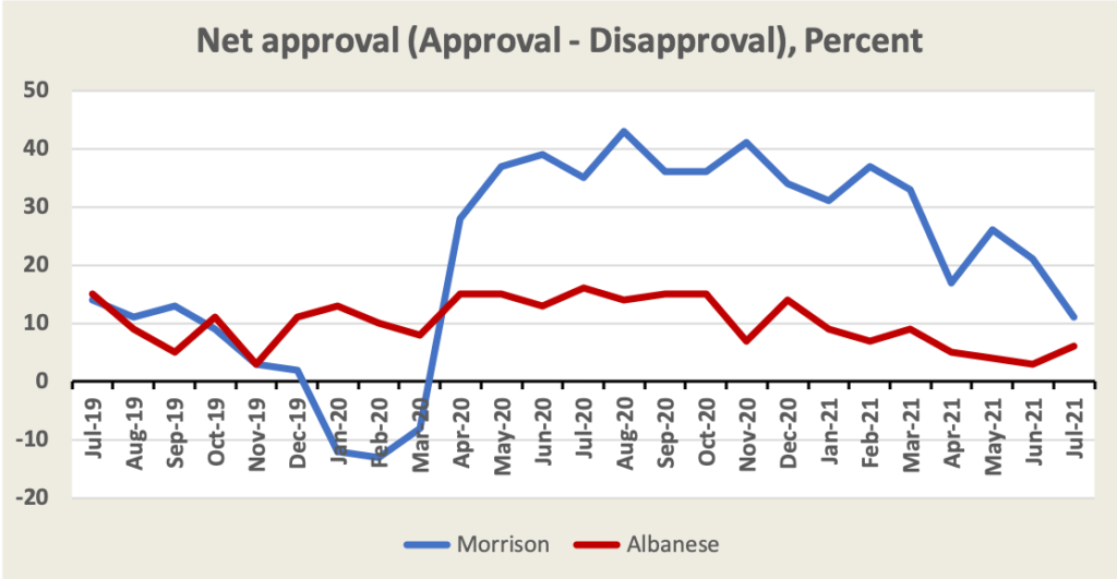 The latest Essential Report has a huge swag of questions, mainly about Covid-19 issues, but it starts with approval ratings for Morrison and Albanese. Morrison’s approval rating continues to slide, but not to the benefit of Albanese, and Morrison’s rating as preferred prime minister remains consistently ahead of Albanese’s.
