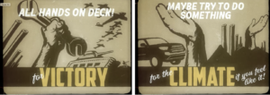 Using great archival footage, the video contrasts the inspiring words of Canada’s wartime prime minister with Justin Trudeau’s contradictory climate change messages, and compares the whole-hearted efforts of Canada’s wartime citizenry with the present-day’s muted response to global warming. The video finishes with a vision of the future to help create common purpose and a call to arms: ‘It’s time to mobilise for the climate emergency’.