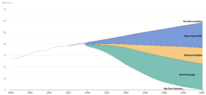 - The blue wedge representing national emissions reduction commitments since Paris in 2015 and the orange wedge representing national emissions reduction pledges made recently in preparation for Glasgow are simply words, they do not represent any actual emissions reductions …