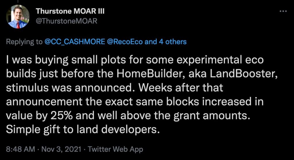 One thing is certain, land owners enjoy the gains of any government support offered to the market.