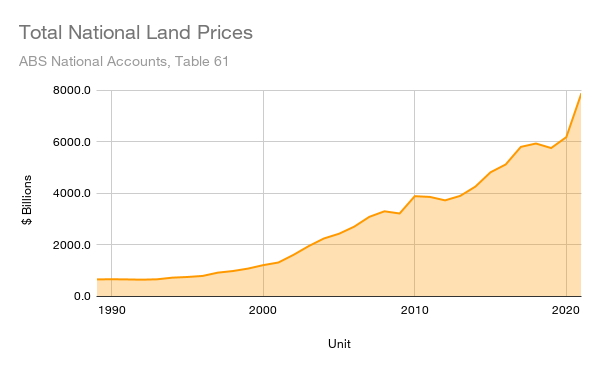 National land values are now $7.89 trillion, making it by far Australia’s largest asset class.