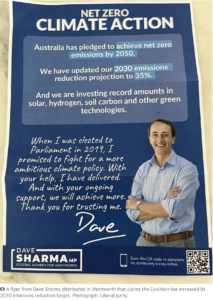 But to be fair, I do Sharma a slight disservice. The heading of his flyer is totally accurate: “Net Zero Climate Action”. That very accurately sums up in a snappy, Morrison-style mantra the government’s and Sharma’s real climate action — ZERO.