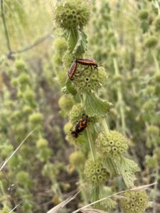 I’ve told you about my holiday reading. Here’s a holiday snap from Tasmania of two pairs of native horehound bugs playing boomps-a-daisy on a white horehound plant, regrettably an introduced invasive. Although the bug does feed on the weed, it doesn’t provide any effective biological control. (Don’t miss the recording.)
