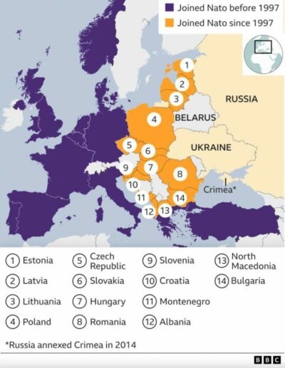 This diagram published this week by the BBC shows just some of the eastward expansion of NATO since that time: