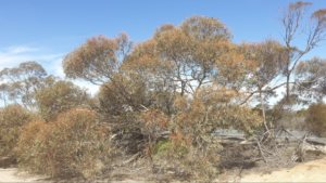 Attractive but perhaps not as showy or majestic as some of its cousins, the name says it all: Eucalyptus socialis, because it lives closely with other Eucalypt species in mallee communities. A Eucalypt that is symbolic for our time when we need strong relationships with other humans and with nature.