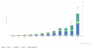 Global sales of electric cars have gone from zero in 2010 to 6.6 million in 2021. There was steady growth until 2019 and a trebling of sales over the last two years. As a proportion of total car sales, electric cars’ share doubled in 2021 (see figure below). As ever when we discuss energy, whether it’s fossil fuels or renewables, China leads the way. Over half of the world’s sales were in China, although Europe with 2.3 million sales is doing pretty well. Between them, China, Europe and the USA account for 96 per cent of sales. In Australia, electric cars made up just 2 per cent of the market in 2021. In countries that have experienced the largest increases in sales, government incentives have been a strong stimulus to market growth. Future challenges for the industry include: governments getting the types of incentives right, and the timing, both the starting and the stopping times; chokes in the supply chains of battery materials; and rolling out battery charging infrastructure.