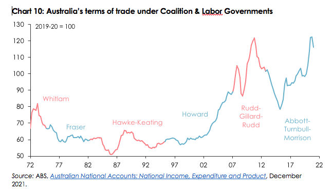 None of these governments of course did anything to procure these terms-of-trade gains – from Australia’s perspective they were the equivalent of ‘manna from heaven’, something which should be borne in mind when interpreting the ‘numbers’ recorded during their time in office.