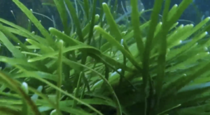 Nutrient overload, algal growth, death of seagrass and loss of vital marine breeding grounds and carbon storage is also a problem in Australia. The salmon farming industry is a major pollutant of the waters around Tasmania. No prizes for guessing which is the healthy seagrass meadow below or for matching one photo with the manatee’s dinner plate above.