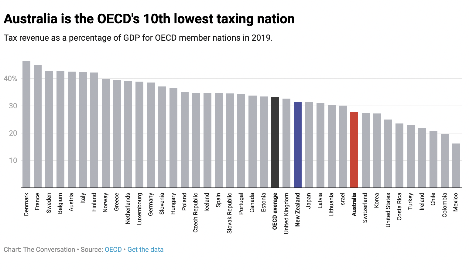 That makes Australia the 29th lowest-taxing nation of the OECD’s 38 members.