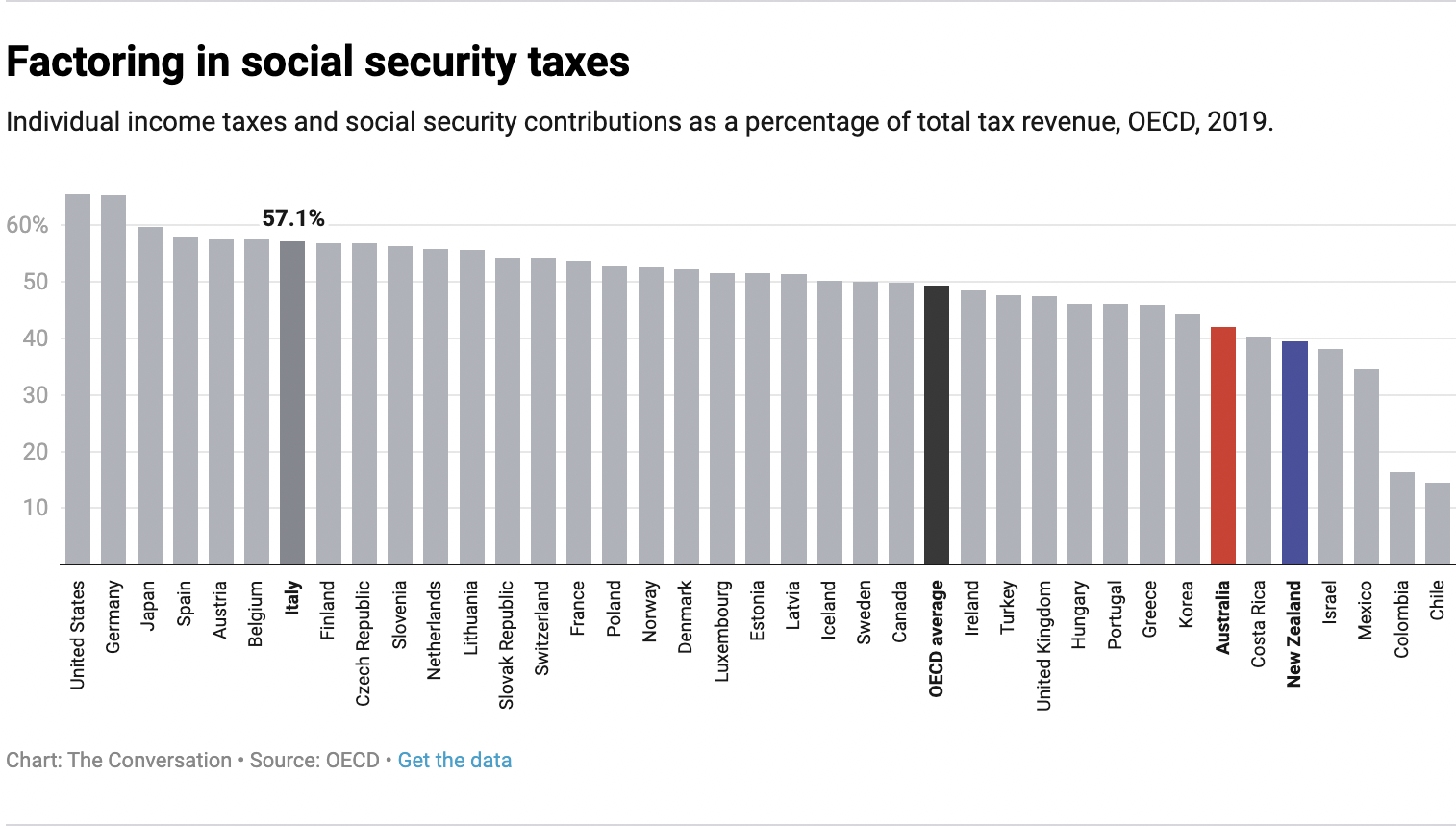 The main reason Australia ranks so highly on individual income tax levels is because Australians don’t pay separate social security taxes.