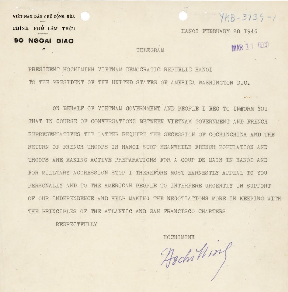 Letter_Ho Chi Minh to President Harry S. Truman, Feb 28 1946