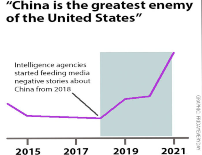 For one thing, widespread mainstream media propaganda has conditioned a high proportion of the public of Australia and the West to fear China as an enemy and an imminent military threat. This disinformation program started in earnest around 2017. It has been shameful - but singularly effective.