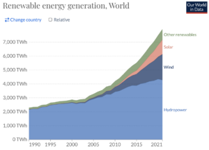 That’s a giant increase but, to provide some context, the generation of solar energy increased globally by about the same amount in just 16 years between 2005 and 2021, while the generation of wind energy took only 25 years from 1996 to 2021 to achieve the same growth.