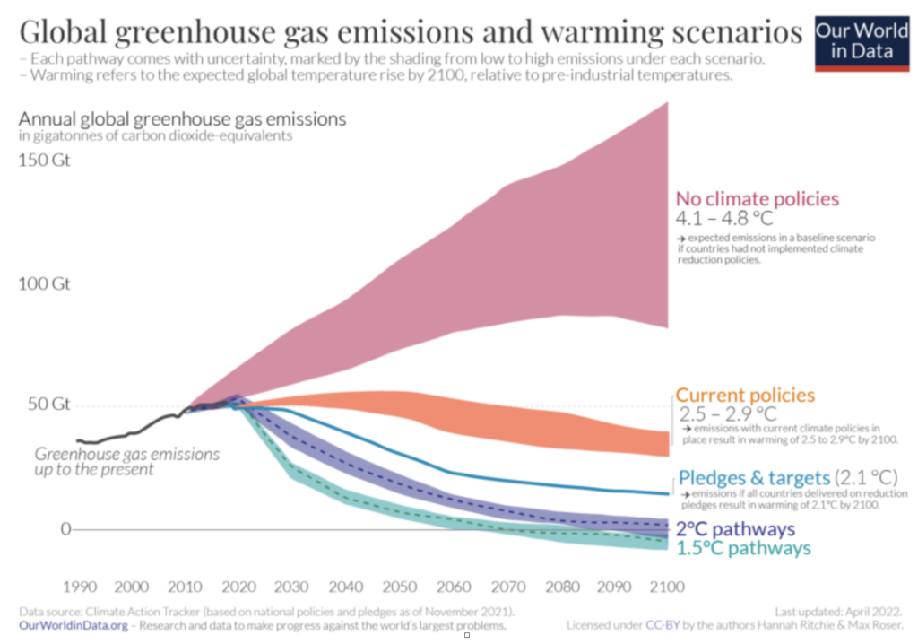 Is Guterres right – or is he just a tad frustrated? Well, here from lips of the world’s numero uno climate scientist, Johan Rockstrom is what failure at COP27 means: “If we go past 2°C of #globalwarming, we will enter completely unknown terrain, a planet that is not even resembling our own planet… We can today say scientifically, without any hesitation, that anything beyond 2°C of global warming is nothing but catastrophic. Every tenth of a degree matters.” Here, in graphic form, is depicted how far from safe our present ‘policies’ are: