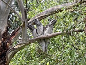 During the break we spent a fortnight in rural Tasmania. The weather wasn’t great but it was still lovely and I had lots of opportunity for walking and birdwatching. I managed to see 52 species of Australian natives, including five of Tasmania’s twelve endemic species. Unfortunately, five imports from the UK were also common. Two moments glow in my memory: the iridescent plumage of a Shining bronze-cuckoo displayed in all its glory in the afternoon sun and a great view of a family of Tawny frogmouths just a few feet off the ground (sorry, not prize-winning photo quality, I know).