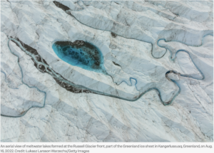 In addition to raising the sea level, the melting ice also creates rivers and lakes on top of the ice sheet, which are visually stunning even if they are a sign of bad things to come.