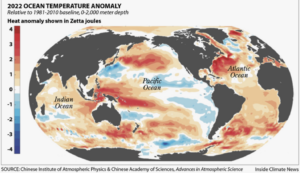 Warmer water doesn’t just mean more comfortable swimming for all us wimps. It also sets the scene for ocean heatwaves such as the ones that devastated vast areas of the Great Barrier Reef a few years ago. The combination of warmer water and warmer overlying air also leads to the air taking up more moisture and this creates the conditions for more severe monsoons and cyclones such as those experienced in the last year in Pakistan, the USA and, of course, here. Hand in hand with this, some places have experienced longer and more intense droughts. Unfortunately both floods and droughts lead to crop failures.