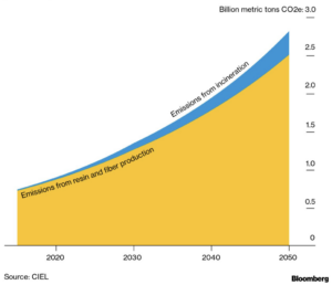 Plastics currently generate almost one billion tons of greenhouse gases per year. This is projected to roughly treble by 2050 as oil companies expand plastic production to make up for the revenue they will lose as burning oil for fuel loses favour.