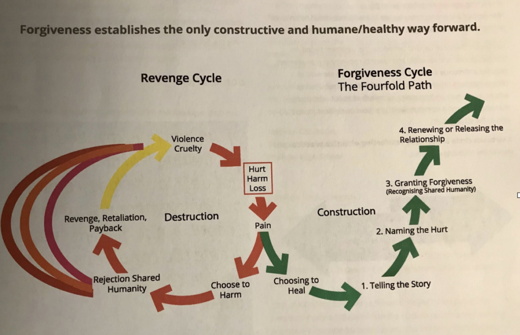 I shared with them this diagram that comes from our work on ‘Forgiveness’ which is influenced by dear Desmond and Mpho Tutu and many others.