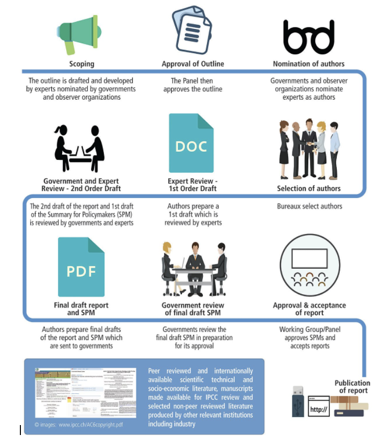 Preparation of IPCC reports - outlined in the infographic below: