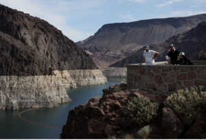 Lake Mead’s falling water level is beautifully illustrated in the picture below.