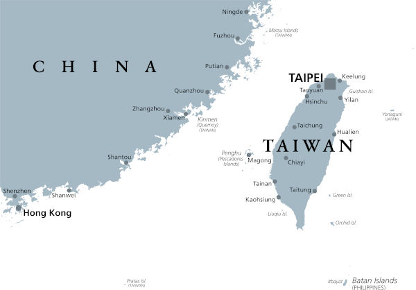 A view on a map shows that this evidently applies to the strait between mainland China and the Chinese island named Taiwan.