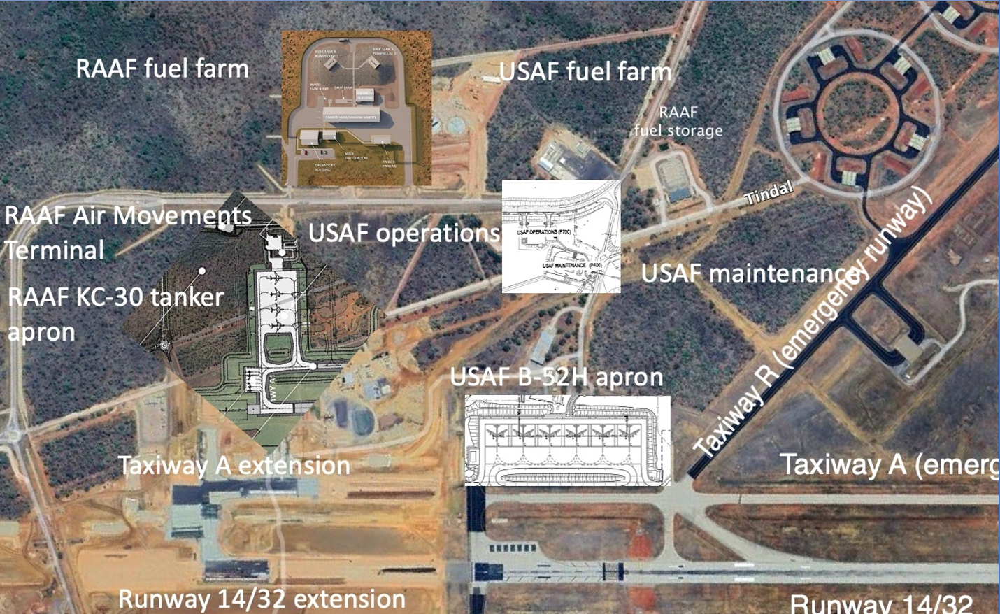 Perhaps the best known example to date of the impact of the Force Posture Agreement has been the huge upgrade of RAAF Base Tindal near Katherine, involving a more than A$1.5 billion expansion financed by Australia and a US$360 million investment to facilitate rotational deployment of USAF B-52H strategic bombers, plus infrastructure to accommodate the fleets of US and Australian logistics supply aircraft, refuelling tankers, protective fighters, and airborne early warning and control aircraft – and their permanent operating personnel - to accompany the B-52s on offensive missions headed for China.
