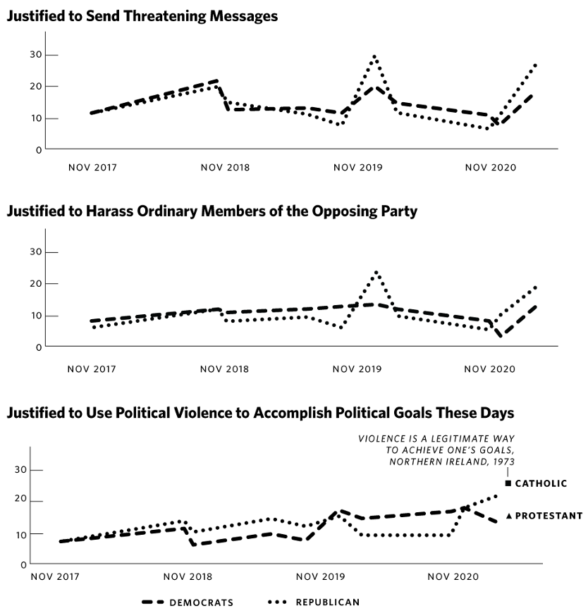 It is particularly worrying that the proportion of people seeing violence as a legitimate way to achieve political goals is approaching levels seen during Northern Ireland’s “Troubles” - years marked by barely suppressed civil war and terrorism.