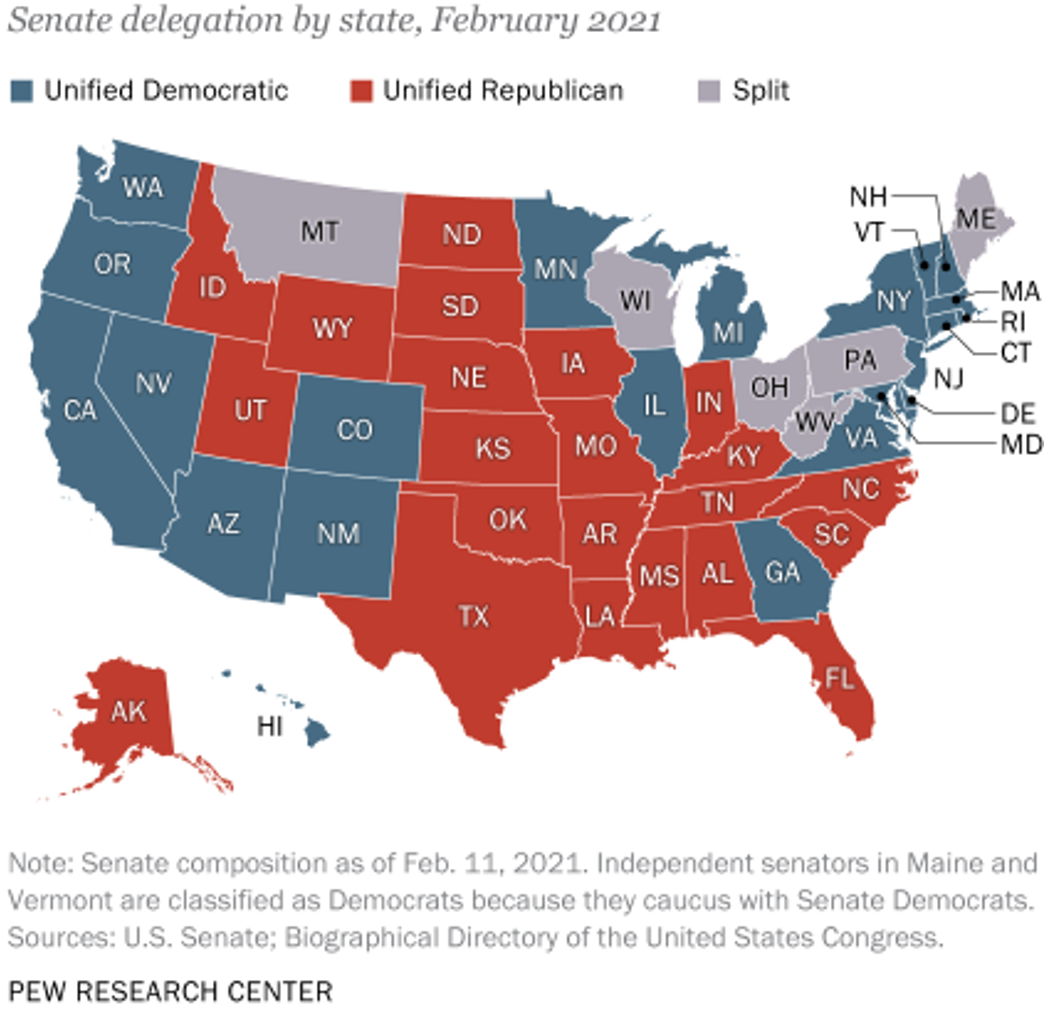 Most states send Senators of the same party to Congress