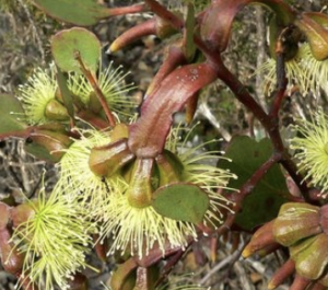 Who knew there was a tree delightfully called a Platypus Gum (Eucalyptus platypus) growing in south-western WA. It acquired its name because the stalk that links the flower to the stem resembles a platypus’s bill – i.e. it is broad, flat and ‘foot’ shaped. This is visible with the eye of faith in the photograph below but the ones I saw were rather more platypus bill-like.