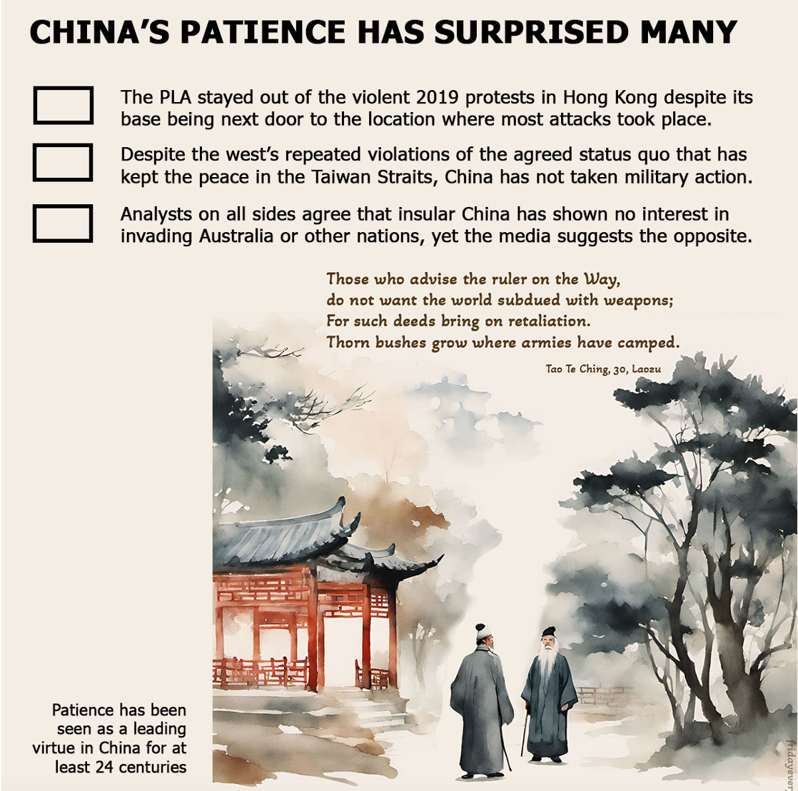 Second, by establishing China’s bad-guy positioning early, it makes the timing flexible. It is abundantly clear by now that this “Shaping of the Theatre” in respect of Taiwan is very advanced; almost as advanced as the shaping of the Ukraine theatre for war with Russia was in 2021.