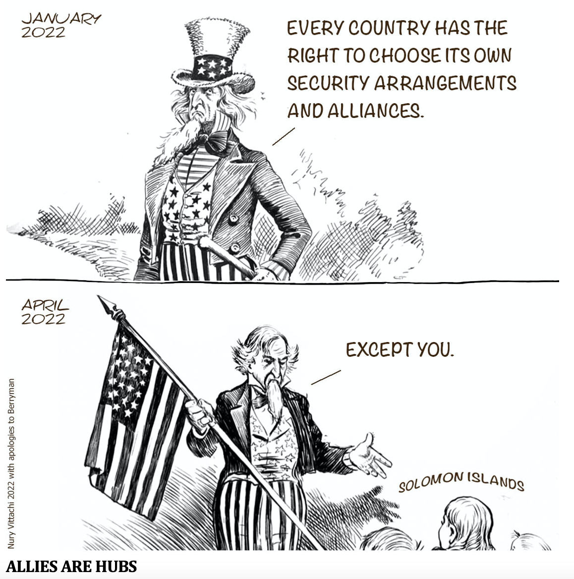 Take Australia. The AUKUS defence agreement was signed between Australia, the United Kingdom, and the United States in 2022. But with a decades-long development program, the weapons that will ultimately come into being were clearly not intended for near-term use. No; AUKUS has been about turning Australia into a spoke in the hub—a partner who cannot say no.
