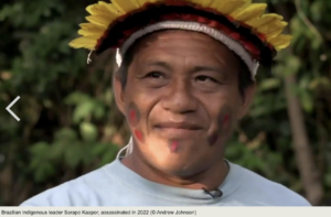 Sarapo Kaapoor was murdered for defending the rainforest land of the Ka’apor people in Brazil from destruction by cattle ranchers, soy planters, loggers and mining companies, with drug cartels also using the activities to launder drug money.