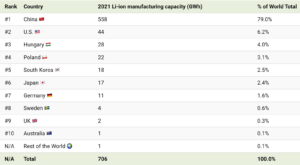 Finally, who is producing the batteries needed for all these vehicles? No prizes for getting this one correct. The table below relates to the current production of all Li-ion batteries but the picture is similar for the current production of batteries specifically for EVs and also for the growth of EV manufacturing capacity in the coming years.