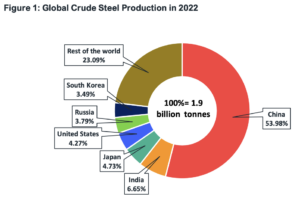 The use of steel is ubiquitous but not its production. China produces more than half of the world’s steel.