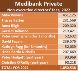 Almost all of these professional directors have similar posts on two or three other major company boards where they are paid comparable amounts. Medibank Private’s Anna Bligh is also the CEO of the Australian Bankers’ Association.