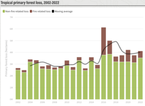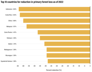 On the other hand, several countries made a big effort and reduced their loss of primary forest between 2015-17 and 2020-22 by around 50%