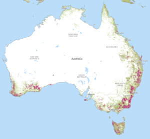 Australia is far from innocent in the forest destruction. In the map below, the green shows areas of tree cover with at least 25% canopy density in 2010 and the purple shows areas that were lost between 2010 and 2022. Tasmania, southwest Western Australia and coastal areas from Bundaberg to Adelaide have suffered greatly.