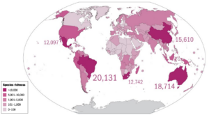 220,000 plant species are unique to a single country, of which 58% have had an extinction risk assessment conducted. Brazil, Australia, China, South Africa and Mexico all have more than 10,000 unique species and collectively account for over a third of country-unique species.