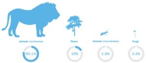 Let’s start with the number of species of vertebrates, plants, fungi and invertebrates: